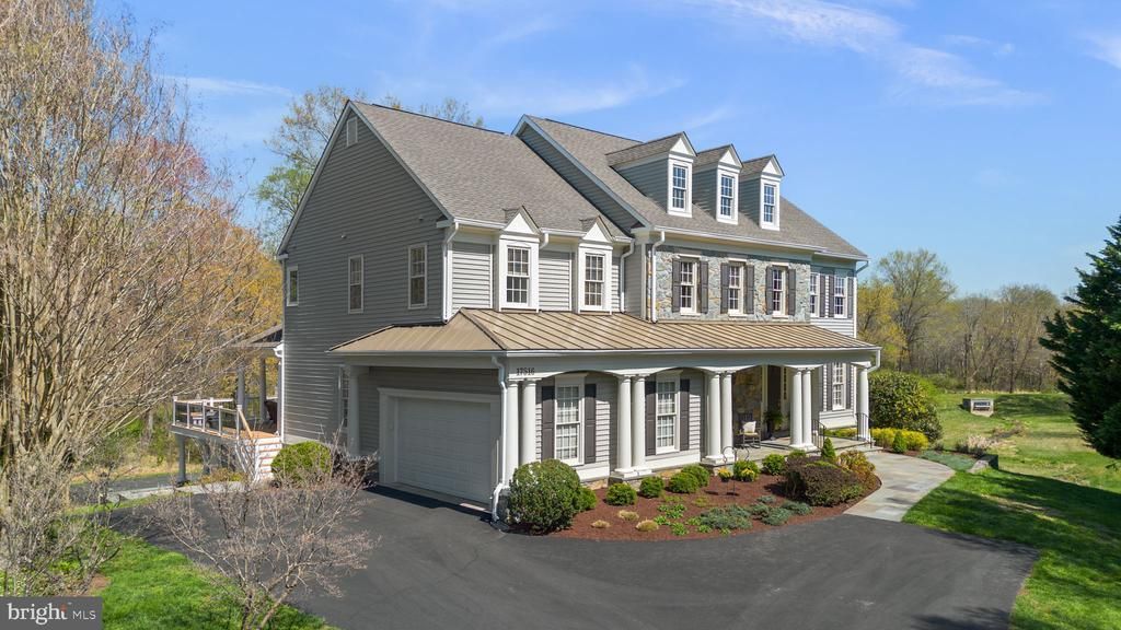 Nestled in the desirable Bancroft neighborhood in Sandy Spring, MD, this exceptional residence offers a peaceful suburban setting with access to walking paths, jogging trails, and tot lots—blending tranquility with everyday convenience. This elegant stone and vinyl two-story Colonial presents 5 bedrooms, 4 full baths, and 1 half bath, encompassing a total of 7,078 square feet, including approximately 6,048 square feet of finished living space. A slate walkway leads to an expansive front porch, while the rear outdoor space is highlighted by a gorgeous and substantial slate patio with retaining walls and a fireplace—creating a refined setting for outdoor living and entertaining. Upstairs, four well-appointed bedrooms include a luxurious primary suite featuring a private sitting room and a spa-inspired bath. A secondary bedroom offers its own en-suite bath, while bedrooms three and four are connected by a Jack-and-Jill bath. The main level is introduced by a grand two-story foyer. To the right of the foyer, a formal living room and a private office or den with custom built-ins are thoughtfully positioned, along with a convenient half bath. To the left of the entry, a spacious formal dining room is ideal for entertaining. Beyond the staircase, a spacious and beautifully appointed family room with a gas fireplace extends seamlessly to the kitchen, creating a warm and inviting gathering space. The kitchen is fully equipped with a center island cooktop, double wall oven, granite countertops, and generous workspace. Just off the kitchen, a light-filled morning room offers casual dining with direct access to a covered deck overlooking the backyard. The opposite side of the kitchen features a built-in desk area, mudroom, laundry room, and access to the attached two-car garage. The finished lower level features a full level walkout to the slate patio and is designed for entertaining, offering an oversized recreation room, a separate game room, and a bar lounge area—perfect for gatherings and extended living.