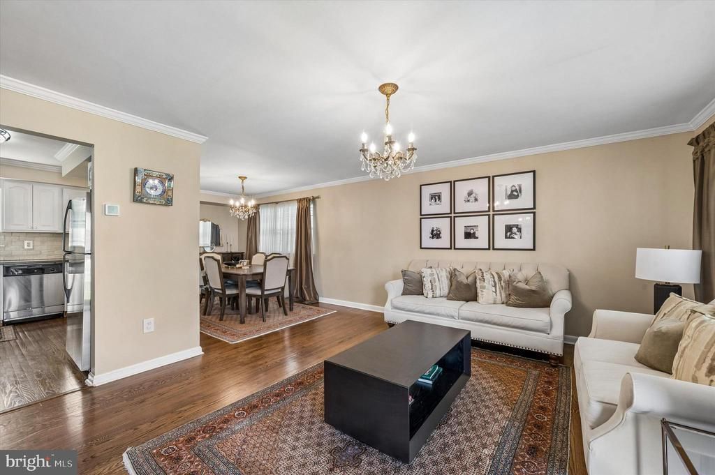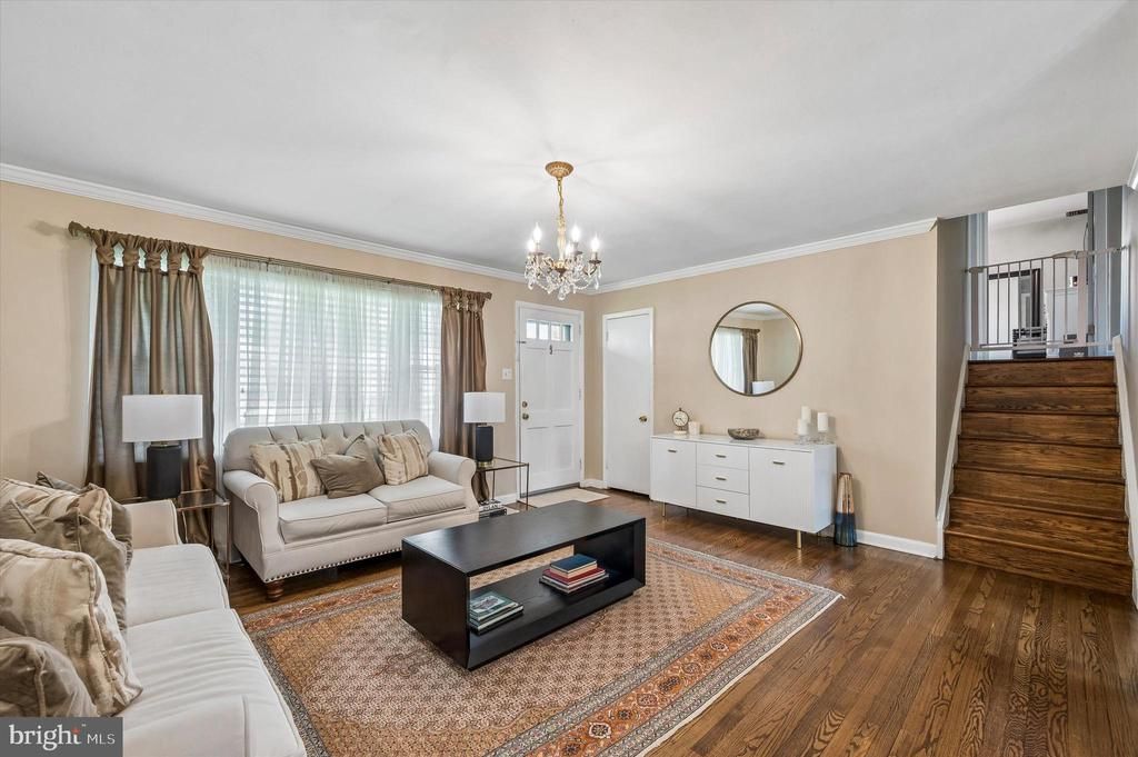 This well-maintained brick-front split-level home offers a perfect blend of comfort and style. Hardwood floors flow throughout all the living spaces, beginning with a spacious living room highlighted by elegant crown molding. The formal dining room also features crown molding and provides direct access to a screened-in rear porch—an ideal spot for relaxing while overlooking the beautifully fenced giant backyard. The modern kitchen is designed with white cabinetry, crown molding, and solid surface countertops, offering both functionality and appeal. The lower level includes a convenient family room, along with access to the laundry room and a half bathroom. Upstairs, the private primary bedroom is spacious and is complemented by two additional generously sized bedrooms. A full, updated hall bathroom completes this level. Additional features include an attached one-car garage with extra storage space and a private driveway providing ample parking. This home is in excellent condition and ready for its next owner to enjoy.